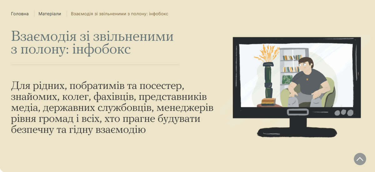 Міністерством у справах ветеранів України в межах Всеукраїнської програми ментального здоров’я «Ти як?» за ініціативи Першої леді Олени Зеленської розроблено та презентовано інфобокс щодо взаємодії з людьми, які пережили полон, тортури, ізоляцію та сексуальне насильство.